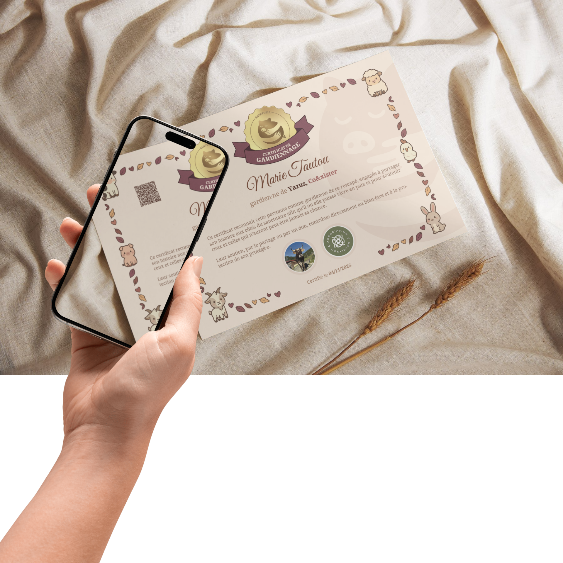 Avec Sanctopia, offrez le titre de gardien·ne d'un·e rescapé·e qui vit désormais en paix dans un sanctuaire.